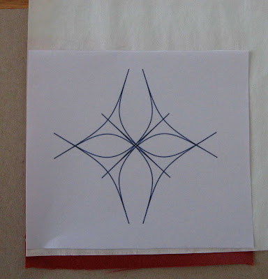 With a quilters pencil or a marking pen I trace the design.
