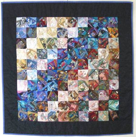 I leave the seams that join the blocks unembellished but some crazy quilters embroider them – it’s personal taste and every quilt is different. I like the defined block. There are no ‘rules’ in crazy quilting so its up to the maker.