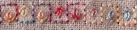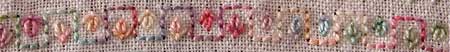 This band is made up of back stitch, detached chain stitch and fly stitch.