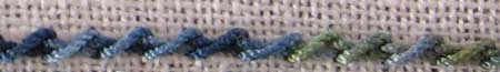 As I explained when I introduced this section of the sampler many of the stitches are basic because they were to demonstrate stitches for The Young Stitchers group at the local branch of the Embroiderers Guild which I co-ordinated at the time. This band illustrates a line of twisted chain stitch