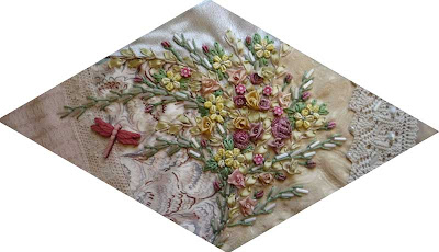 Hi all waving here with a work in progress report before dashing off to the annual Lifeline book fair. As you can see I have another couple of blocks to share with you. After this they may slow down a little because I am writing a beginners class on silk ribbon embroidery.