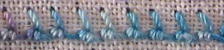 This band illustrates Berwick stitch which is a member of the buttonhole family of stitches.