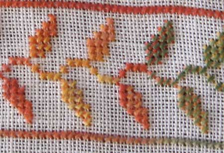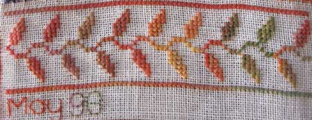 This band is a traditional pattern worked in cross stitch. The date is worked in back stitch.