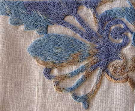 Marg thread painting with wool is much quicker that stranded cotton and it has more depth if you control the tension. I like it but it can get boring doing the same stitch over a large area.