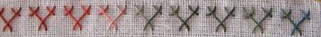 This band of stitching is created by sections of single herringbone stitch and simply repeating them across the band.