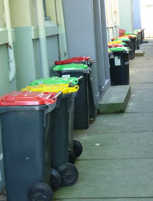 Obviously the colour of the rubbish bin lids interested me