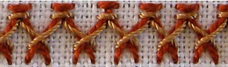 This band of stitching is another hybrid stitch as it is created by working a foundation row of the hybrid of chevron stitch and herringbone stitch and then working a second smaller row on top of that.