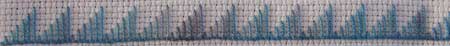 The sample is worked on Aida. I only used one thread on this section of the sampler. It is a cotton thread which was hand dyed by me with procion dyes