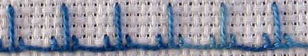 The sample is worked on Aida fabric. The thread is a hand dyed cotton thread