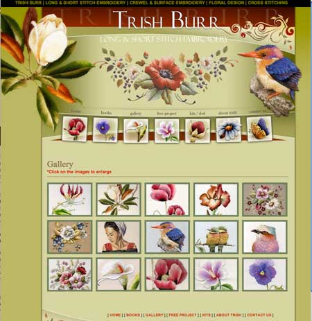 If you have not seen Trish Burr’s embroidery do visit her site. The gallery is loaded full of projects that will make you dribble on keyboard and dont miss the free design on her site too.