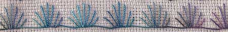 This is another variation on basic buttonhole stitch worked in a ‘crown’ like formation.