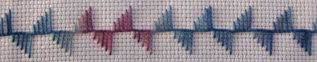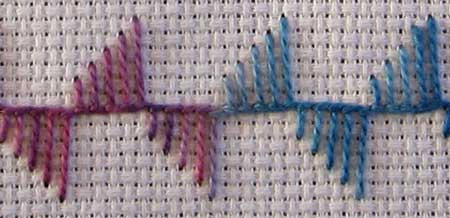 This is another variation on basic buttonhole stitch which swings from side to side.