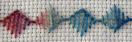 This is another variation on basic buttonhole stitch which swings from side to side.