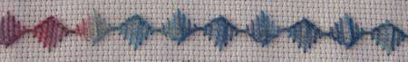 The sample is worked on Aida fabric using a hand dyed cotton thread which is about the same weight and thickness as perle 8
