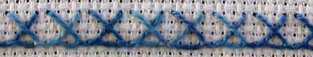 This band on my band sampler is another variation on basic buttonhole stitch known as crossed buttonhole