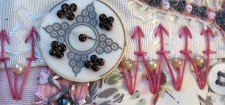 This regularly published series aims to illustrate and document the hand embroidered seams, embellishments and decorations on my crazy quilt I dropped the button box. All articles are categorised in the projects under Crazy Quilt details which enables readers to browse back through the series.