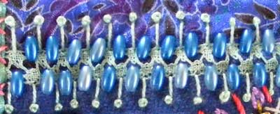 This seam was first covered with lace then I added straight stitches and French knots space between a line of beads