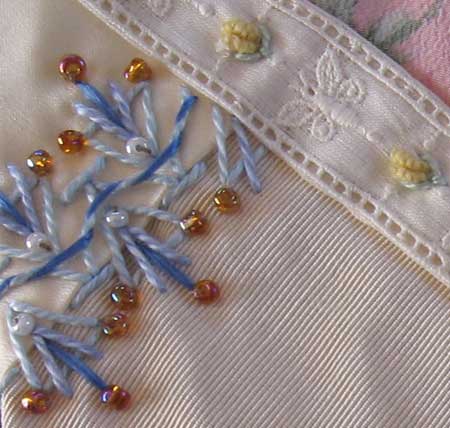 This is a small seam embroidered using chevron stitch which was interlaced then on the return I worked straight stitches and added seed beads.