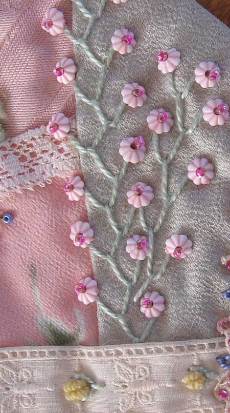 This section is feather stitch worked in perle #5 and decorated with small novelty beads.