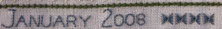 This is the last band on section 27 of the For the Love of Stitching band sampler is worked in perle cotton #5 and perle cotton #8. The green line is double knot stitch