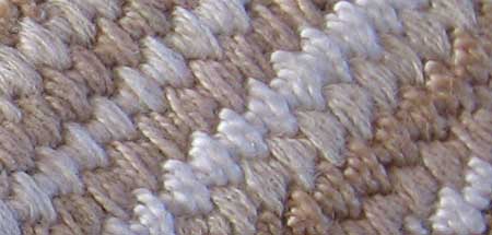 This area on section 28 of the For the Love of Stitching band sampler is a pattern of straight stitches worked on the diagonal. In canvas work it is known as Milanese stitch