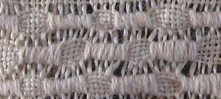 This area on section 28 of the For the Love of Stitching band sampler is a pattern of straight stitches which have been pulled.