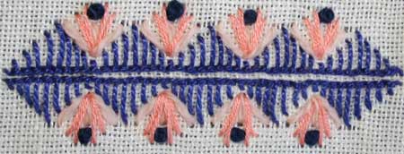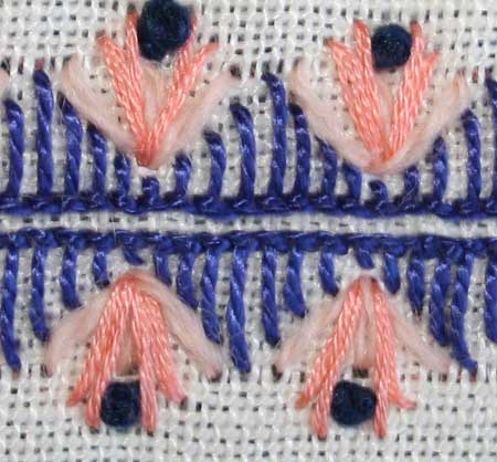 The is pattern created by working a combination of buttonhole, straight stitches and French knots