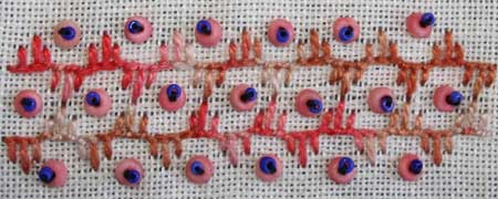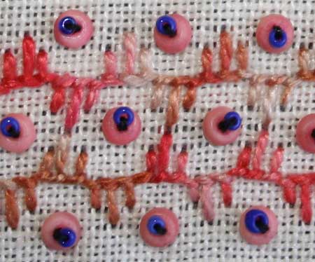 This band is created by working lines of alternating buttonhole, and adding beads in the gaps formed by the pattern