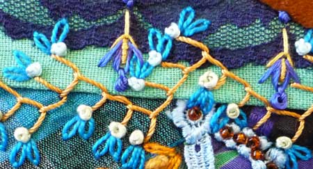 This regularly published series aims to illustrate and document the hand embroidered seams, embellishments and decorations on my crazy quilt I dropped the button box. All articles are categorised in the projects under Crazy Quilt details which enables readers to browse back through the series.