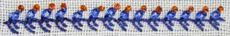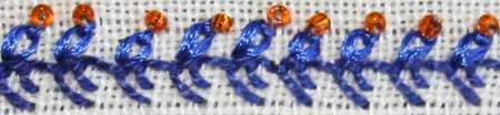This band is created by working a line of buttonhole, and adding detached chain, straight stitches and seed beads.