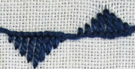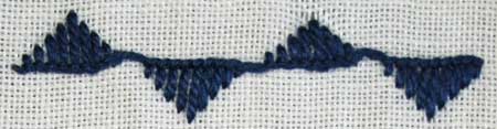 This band is a line of buttonhole flipped from side to side and worked in a triangular pattern