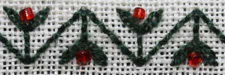 The zig zag is back stitch and the in the valleys I have worked a detached chain sttich and added a bead.