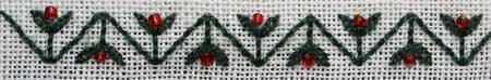 This is part of the border area on Section 32 of the For Love of Stitching Band Sampler I used the border areas of this sampler to experiment with different designs based on a zig zag movement.