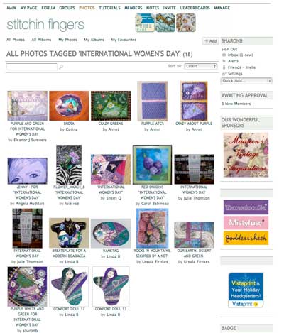 We have another special event on Stitchin Fingers in the form of a post a photo challenge to honour of International Women’s Day (8 March). Since this is a global celebration to mark achievements of women past, present and future and 2011 is the Global Centenary Year I thought it was not only appropriate but would be fun.
