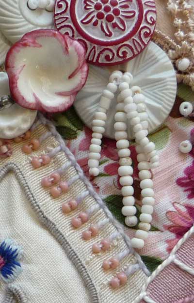 This regularly published series aims to illustrate and document the hand embroidered seams, embellishments and decorations on my crazy quilt I dropped the button box. All articles are categorised in the projects under Crazy Quilt details which enables readers to browse back through the series.