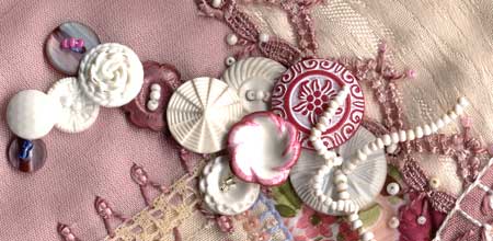 This regularly published series aims to illustrate and document the hand embroidered seams, embellishments and decorations on my crazy quilt I dropped the button box. All articles are categorised in the projects under Crazy Quilt details which enables readers to browse back through the series.