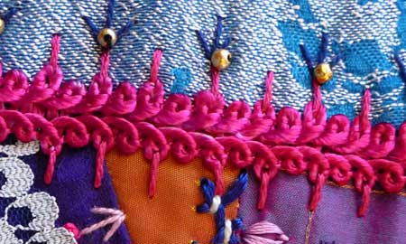 This regularly published series aims to illustrate and document the hand embroidered seams, embellishments and decorations on my crazy quilt I dropped the button box. All articles are categorised in the projects under Crazy Quilt details which enables readers to browse back through the series.
