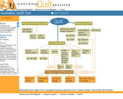 For those who do not know lot about Australian quilting traditions you can also browse by quilting style (such as crazy quilting or waggas) via the Australian quilt tree.