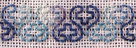 This band of stitching is a blackwork pattern worked in back stitch. It was a light relief after the complexity of area 95.
